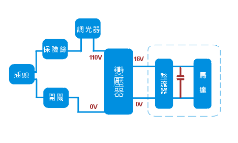 風扇馬達控制部分示意圖(虛線部分是FR內部)