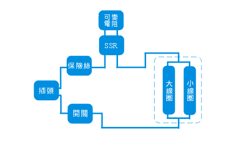 FR plus的改機,與爆米花機類似,主要是加上控制盒,將風扇馬達與加熱線圈獨立出來控制,修改的重點有二,分別是控制盒的製作與FR機器的內部修改,分別於以下說明: 1.控制盒的製作